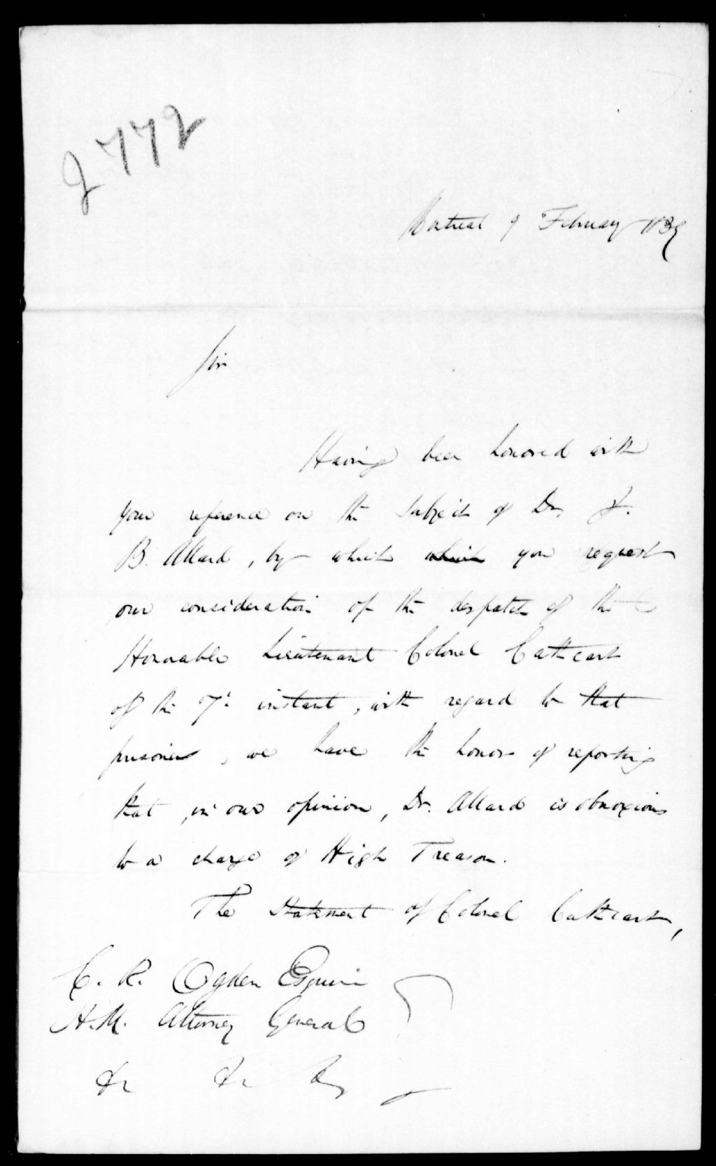 Lettre des commissaires militaires A. Buchanan, George Weekes, John Bleakley, Duncan Fisher à Charles Richard Ogden, procureur général