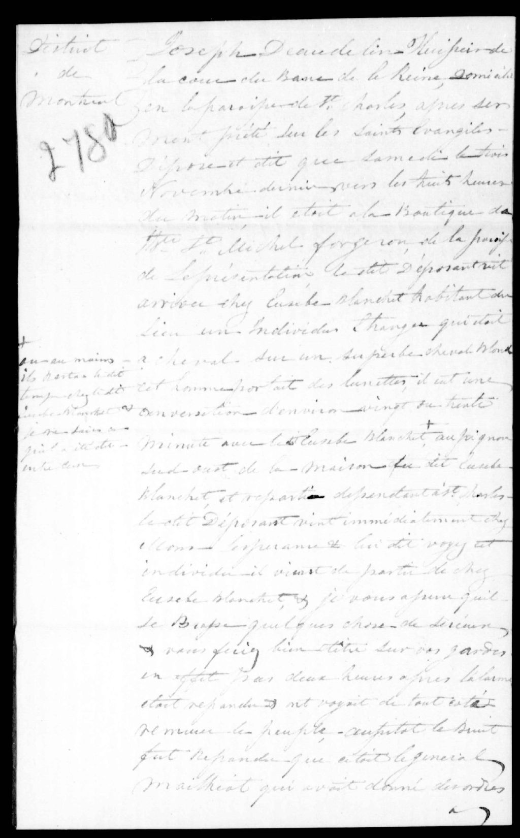 Déposition de Joseph Daudelin, de Saint-Charles, contre Eusèbe Blanchet et Malhiot