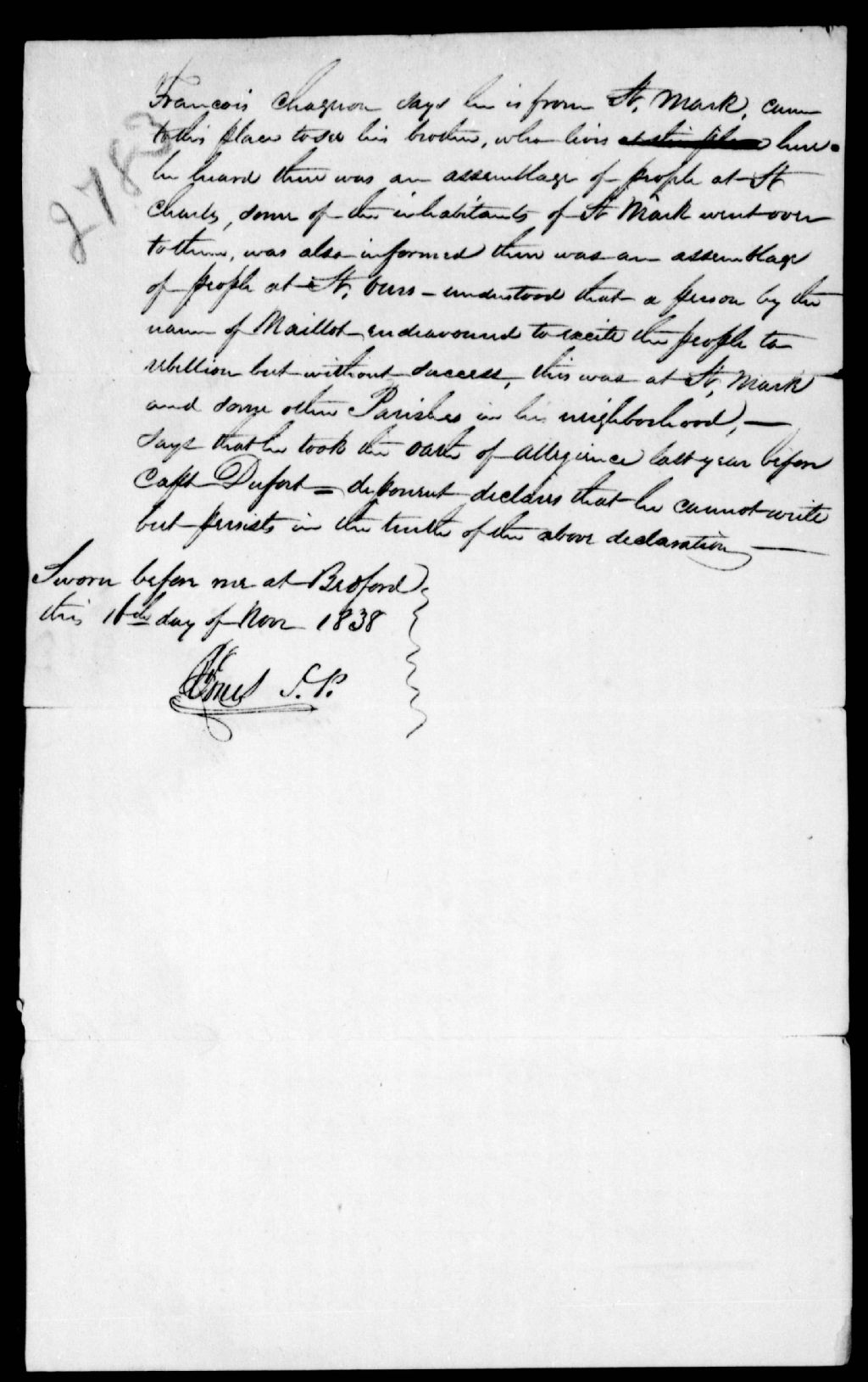 - Déposition de François Chagnon, de Saint-Marc, contre E.-E. Malhiot