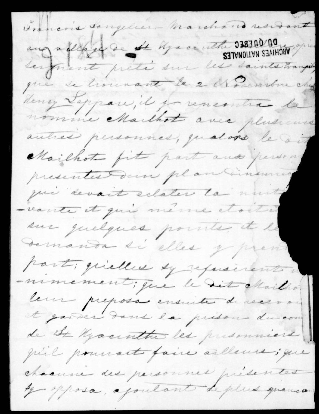 Déposition de François Langelier, de Saint-Hyacinthe, contre Malhiot