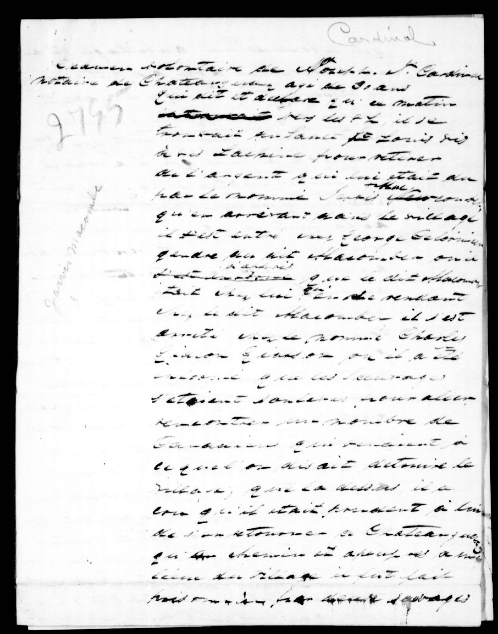 Examen de Joseph-Narcisse Cardinal, 4 novembre 1838, Archives nationales à Québec, Fonds Ministère de la Justice, (03Q,E17,S37,D2795).