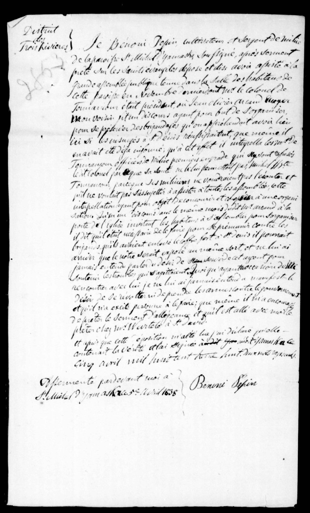 Déposition de Bénoni Pepin en faveur de Jean-Olivier Arcand