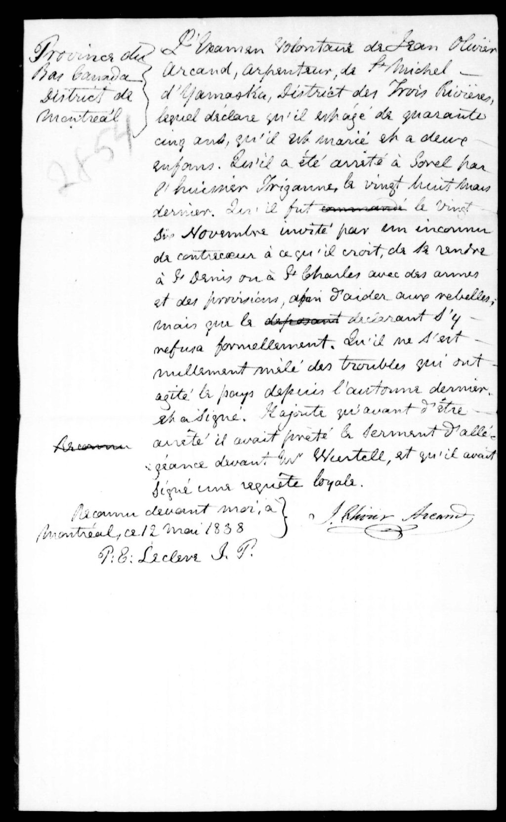 Examen de Jean-Olivier Arcand, arpenteur, de Saint-Michel-d'Yamaska