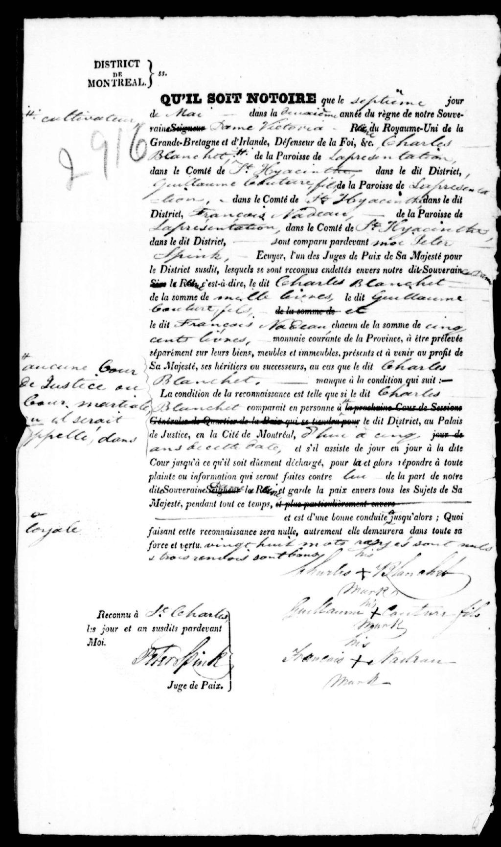 Cautionnement de Charles Blanchet