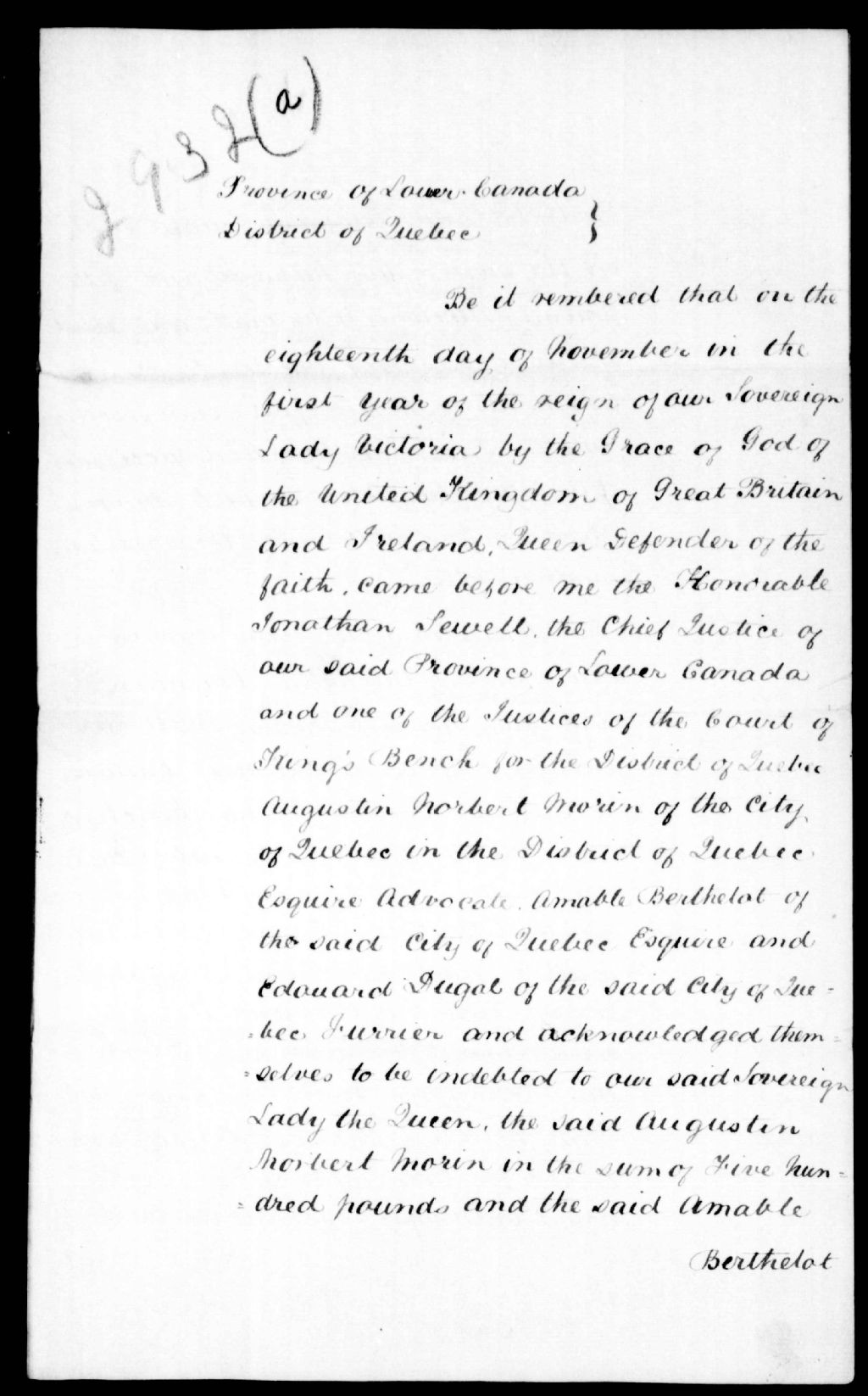 - Cautionnement d'Auguste-Norbert Morin (Augustin-Norbert Morin)