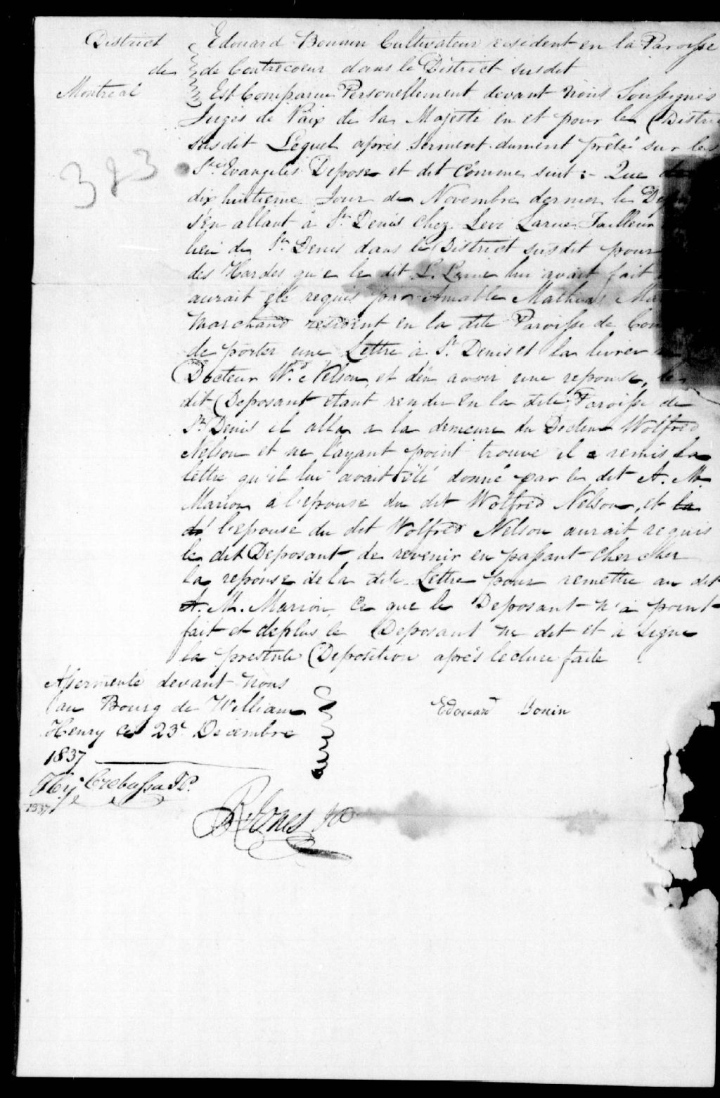 Déposition d'Édouard Bonin, de Contrecoeur