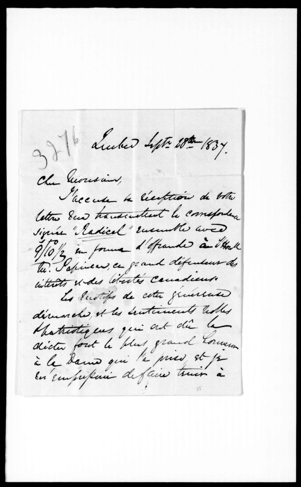 - Lettre de R.-S.-M. Bouchette à Caïus Arcand, à propos du journal le Libéral, saisie chez M. Caïus Arcand, notaire, de Saint-Joseph-de-Beauce