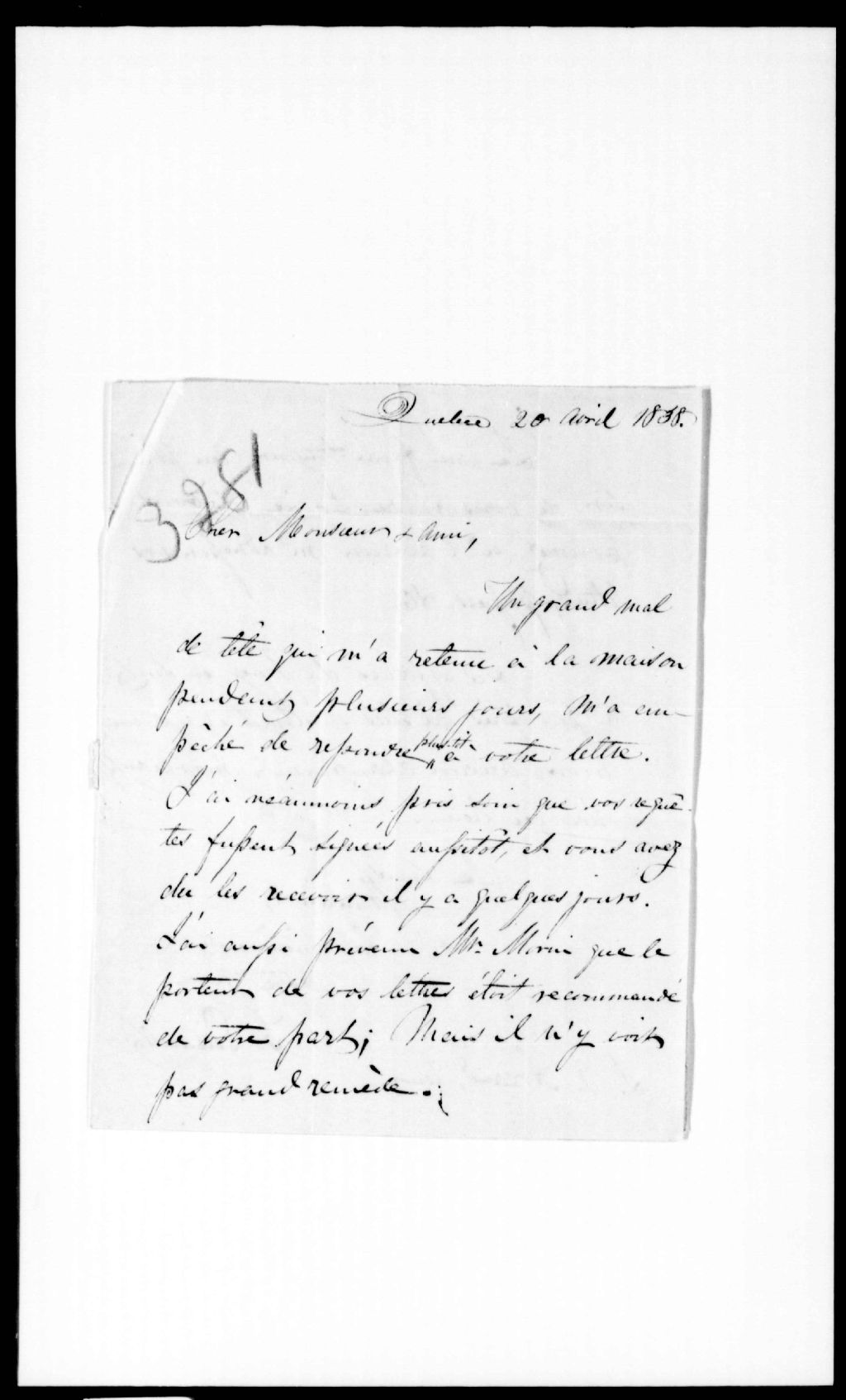 - Lettre de F. Perrault. Québec, saisie chez M. Caïus Arcand, notaire, de Saint-Joseph-de-Beauce