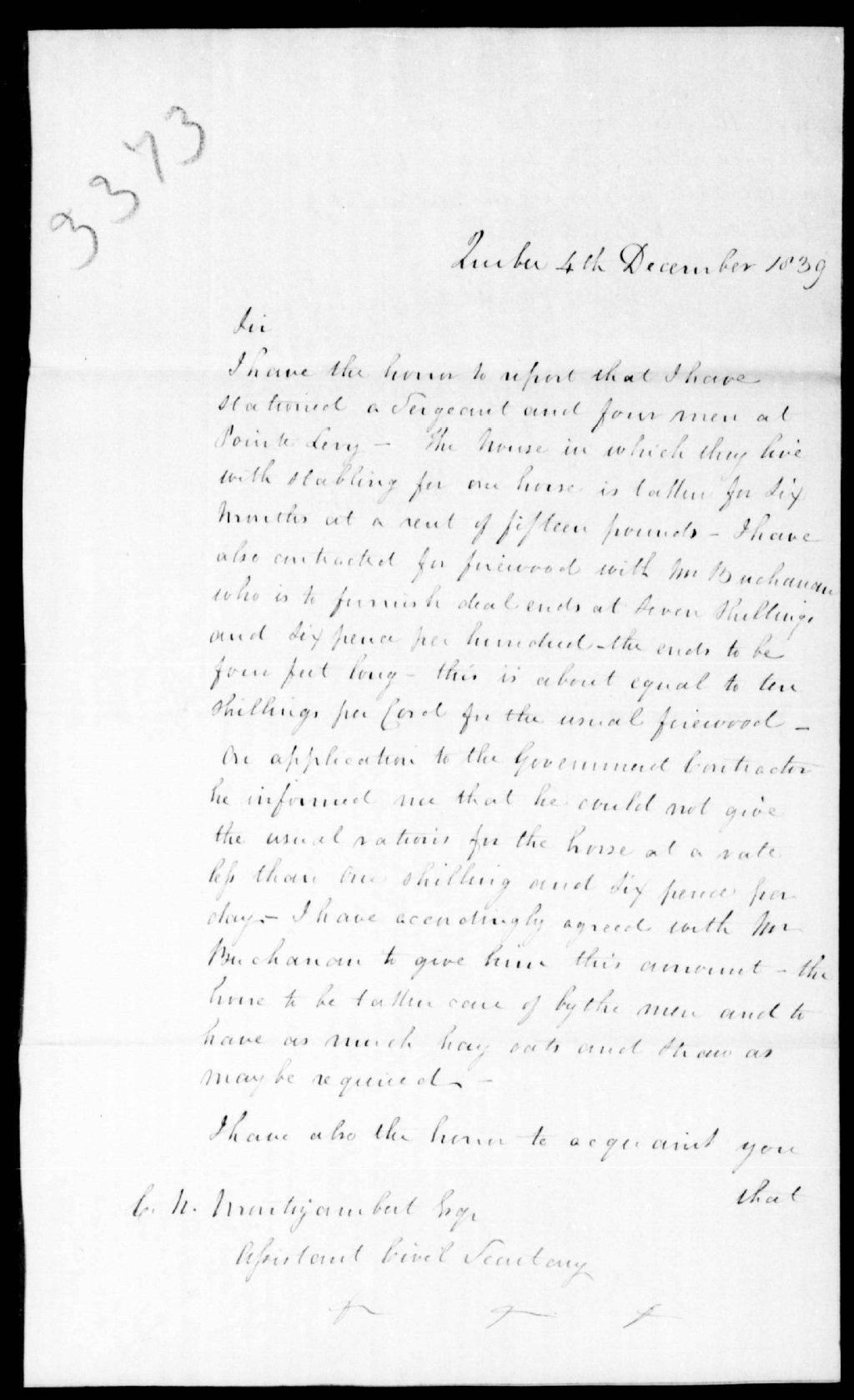 Lettre de Thomas Ainslie Young, chef de police à Québec, à C.-N. Montizambert
