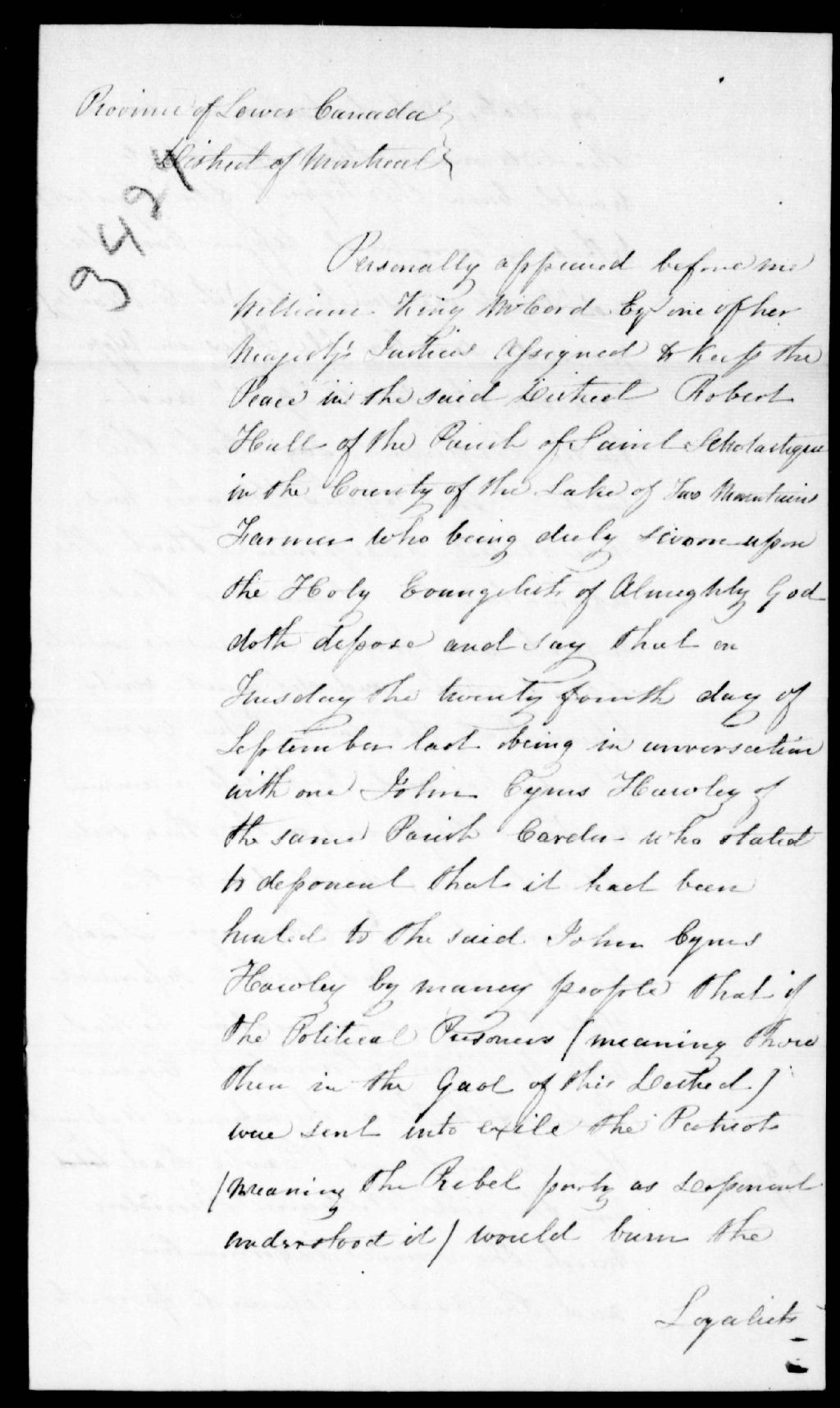 - Ce dossier fait partie d'un ensemble de documents intitulé : Correspondance des officiers du gouvernement en 1837, 1838 et 1839. William King McCord, magistrat stipendiaire à Sainte-Scholastique