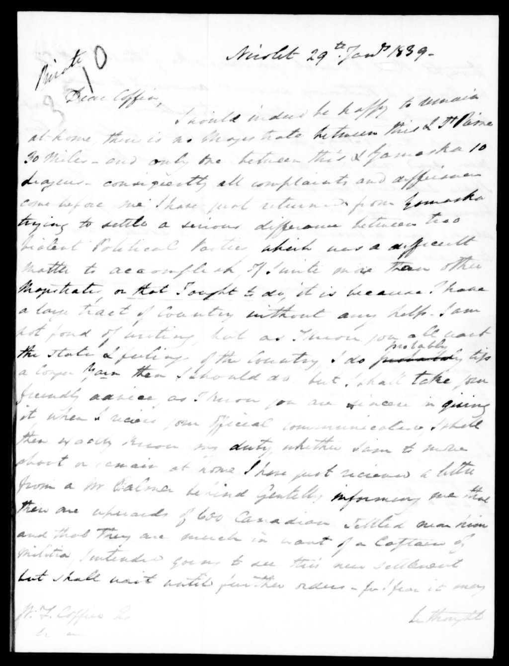 - Lettre de W. C. Hanson, magistrat stipendiaire à Nicolet, à William Foster Coffin