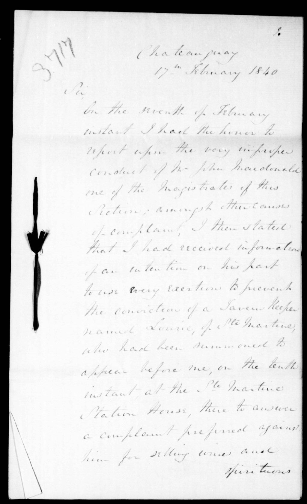 - Nouvelles plaintes contre John Macdonald. Ce dossier fait partie d'un ensemble de documents intitulé : Edward Henry Bowen, magistrat stipendiaire à Châteauguay