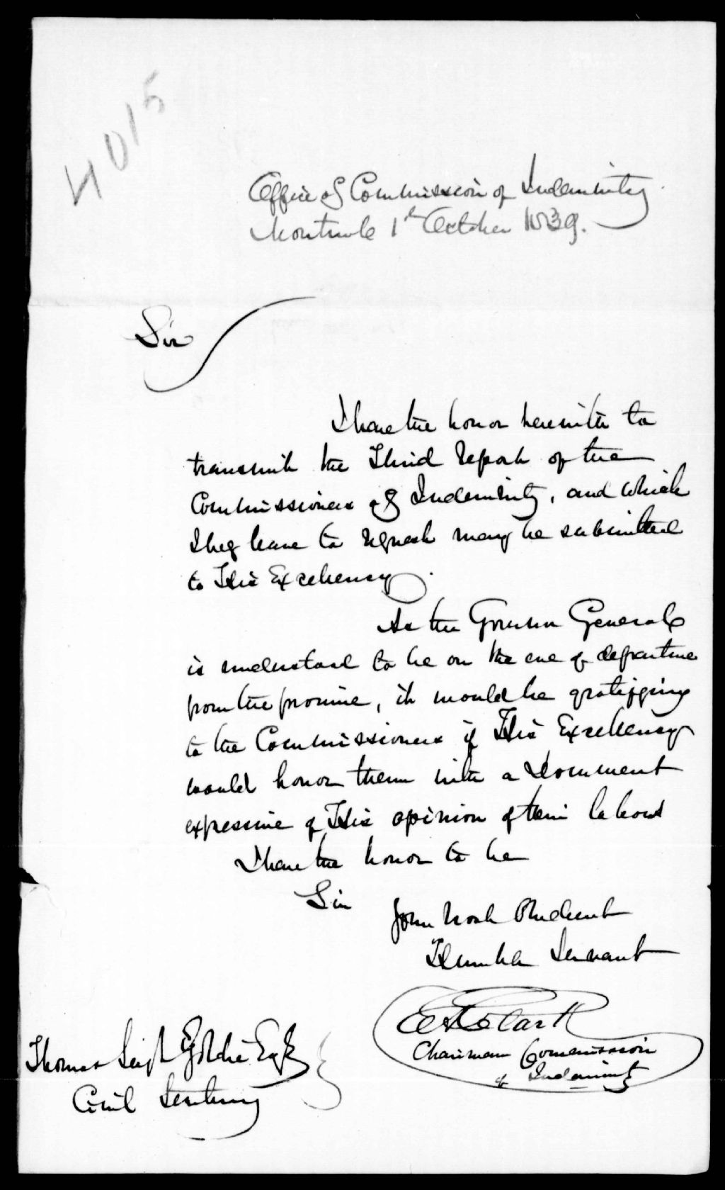 - Les membres de la Commission des indemnités envoient leur troisième rapport. Ce dossier fait partie d'un ensemble de documents intitulé : La Commission des indemnités pour les pertes subies pendant l'insurrection de 1837 et 1838