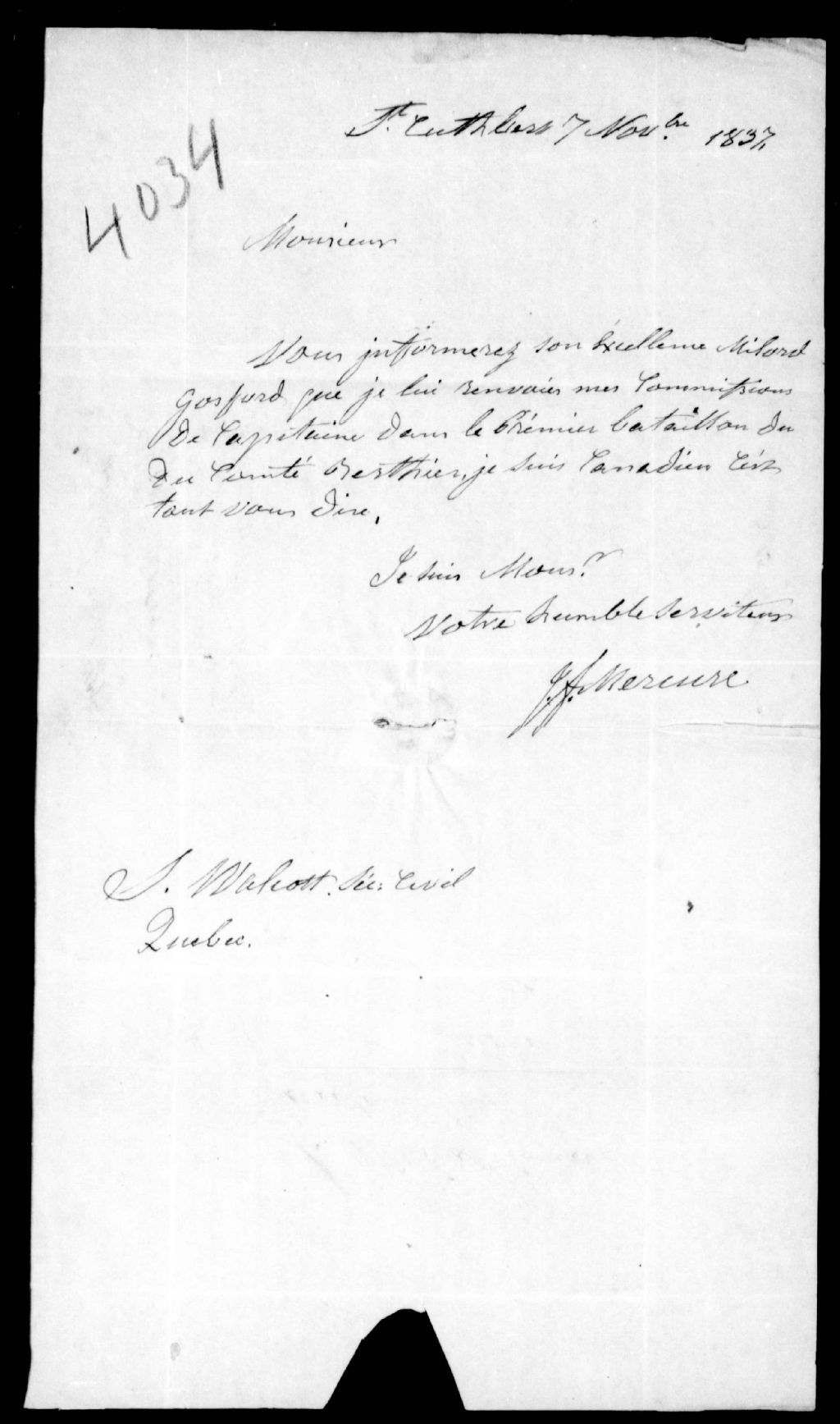 - Lettre de J.-F. Mercure à Stephen Walcott, datée de Saint-Cuthbert