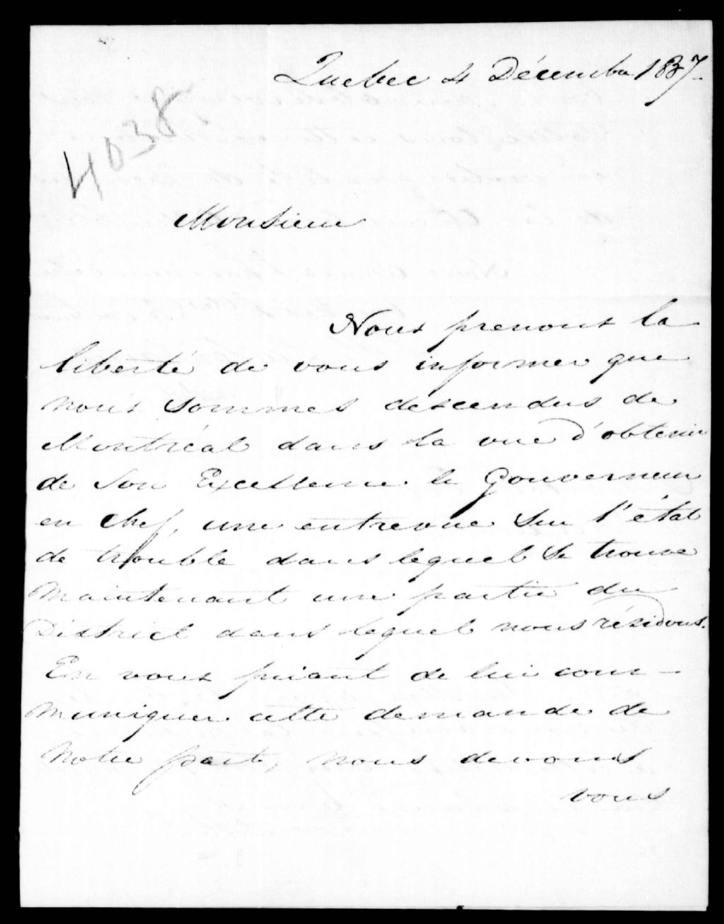 - Ils demandent une entrevue avec le gouverneur. Ce dossier fait partie d'un ensemble de documents intitulé : Lettres privées adressées au gouverneur