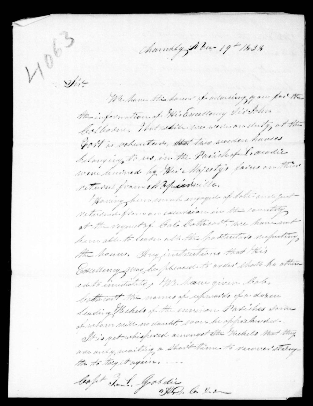 - Lettre de S. et A. Andres au capitaine Thomas N. Leigh Goldie, secrétaire civil, datée de Chambly