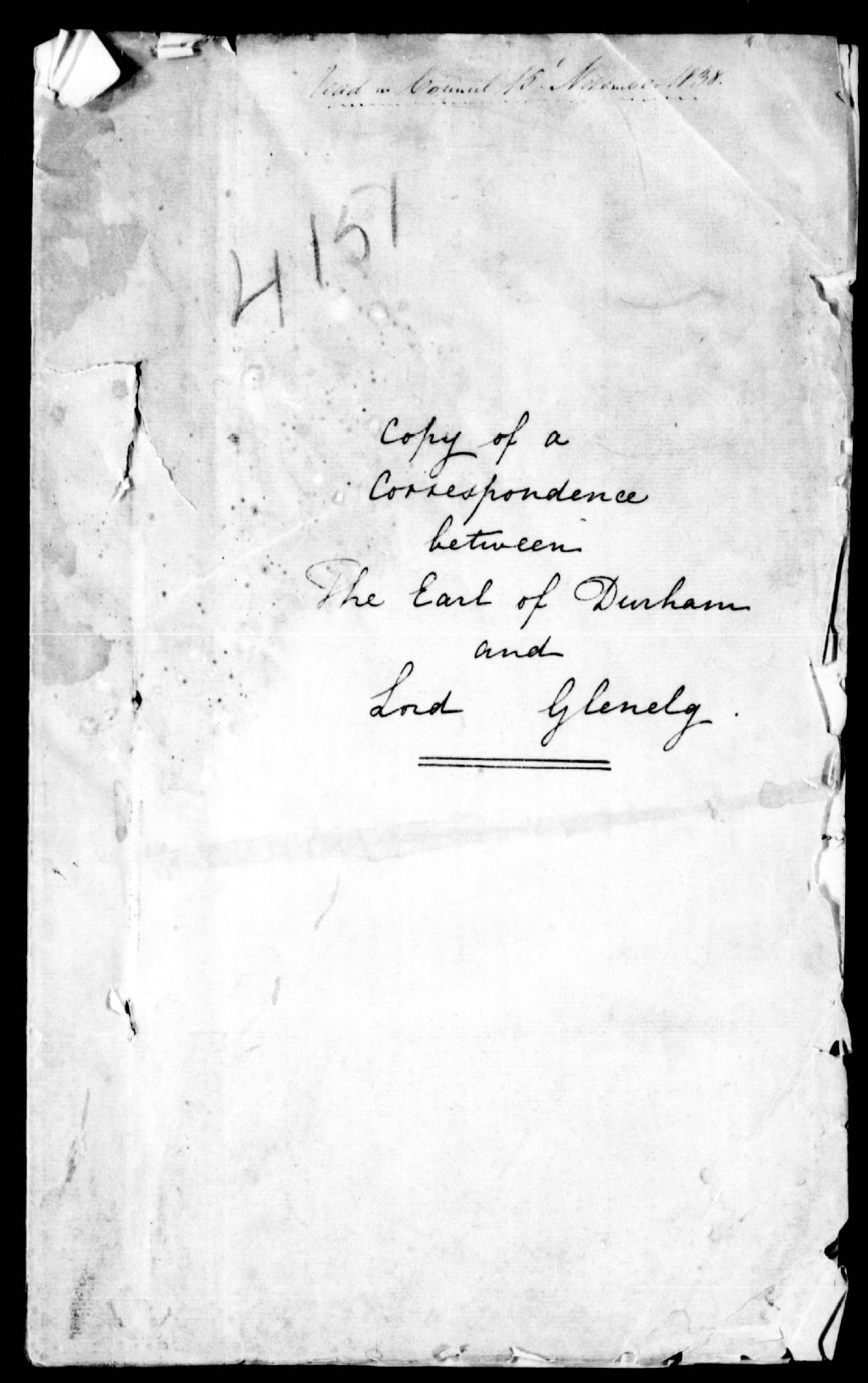 - 1° Glenelg à Durham, No 83, 5 août 1838. Il accuse réception de la dépêche du 28 juin où il est question des prisonniers politiques. Il ne se croit pas en position de faire des remarques sur les mesures adoptées. 2° Glenelg à Durham, No 84, 6 août 1838. Il approuve la nomination d¿une commission chargée de faire enquête dans le mode de distribution des terres de la Couronne. 3° Durham à Glenelg, No 66, 25 septembre 1838. Il a appris avec chagrin la discussion qui a eu lieu à la Chambre des lords, à propos de ses pouvoirs. Les procédés de la Chambre ont été cause que plusieurs ont perdu confiance en lui, et il croit que dans les circonstances, il doit résigner sa position. 4° Copie d¿une adresse des citoyens des provinces maritimes. On a appris avec regret la nouvelle de son prochain départ. 5° Réponse de Lord Durham à l¿adresse ci-dessus mentionnée. 6° Glenelg à Durham, No 89, 18 août 1839. Il lui envoie une copie de l¿opinion des officiers en loi, sur l¿ordonnance ¿for the security of the Province of Lower Canada¿. Ce que l¿on désapprouve surtout, c¿est la clause ayant rapport aux prisonniers politiques. On se montre trop sévère quand on déclare que les refugiés qui retourneront au pays seront condamnés à l¿exil. Considérant que l¿ordonnance était ultra vires la Chambre des lords désavouée, et un bill restreignant les pouvoirs du Conseil spécial a été adopté. Le gouvernement, tout de même, ne permettra pas que les exilés aux Bermudes retournent en Canada, sans permission. Il propose à Lord Durham d¿émettre une ordonnance où il déclarera que les exilés qui reviendront devront subir leur procès pour crime de haute trahison. La suspension de l¿acte de l¿Habeas corpus sera maintenue. Tout cela est laissé à sa discrétion, et le gouvernement ne le gênera pas dans sa manière d¿agir. Le gouvernement regrette les difficultés auxquelles il est en butte. Les mesures qu¿il a prises étaient conçues dans un esprit de justice, mais elles n¿avaient pas les formalités légales requises. Il peut être assuré du support du gouvernement. No 70 Copie du rapport des officiers en loi Campbell et Rolfe, Temple, 6 août 1838. 8° Durham à Glenelg, No 67, Québec, 26 septembre 1838. Il donne les raisons qui lui font croire que l¿ordonnance condamnant les prisonniers politiques à l¿exil n¿est pas illégale. Il admet, cependant, qu¿on aurait dû demander le consentement du gouvernement ou de la législature des Bermudes, pour y débarquer les prisonniers. 9° Durham à Glenelg, No 68, 28 septembre 1838. Il a reçu la dépêche N° 89. L¿acte d¿indemnité passé par le gouvernement britannique diffère du bill de Lord Brougham. Cet acte est une condamnation de sa manière d¿agir. Il le proclamera, tout de même. Il explique certaines mesures qu¿il se proposait d¿appliquer et qui ne sont pas contenues dans l¿ordonnance. L¿Acte d¿indemnité ne distingue pas entre ceux qui ont mérité un châtiment et les autres. Les chefs de la rébellion pourront renouveler leurs actes d¿insubordination. Il ne croit pas qu¿une nouvelle ordonnance ait l¿effet désiré par Lord Glenelg. On ne doit pas suspendre l¿acte de l¿Habeas Corpus. Son intention première était de résigner immédiatement sa position. En sa qualité de gouverneur et de haut commissaire, il a pris certains engagements qu¿il doit remplir. Il retournera en Angleterre dans quelques semaines et espère qu¿il pourra user de son influence pour le bien de la colonie, dans le parlement. (Un résumé de ces pièces est donné dans Report of the Public Archives for the year 1923, Arthur Doughty, Ottawa. 1924, appendix B. The Durham Papers.). Ce dossier fait partie d'un ensemble de documents intitulé : Correspondance des gouverneurs avec le Bureau colonial (Colonial Office)