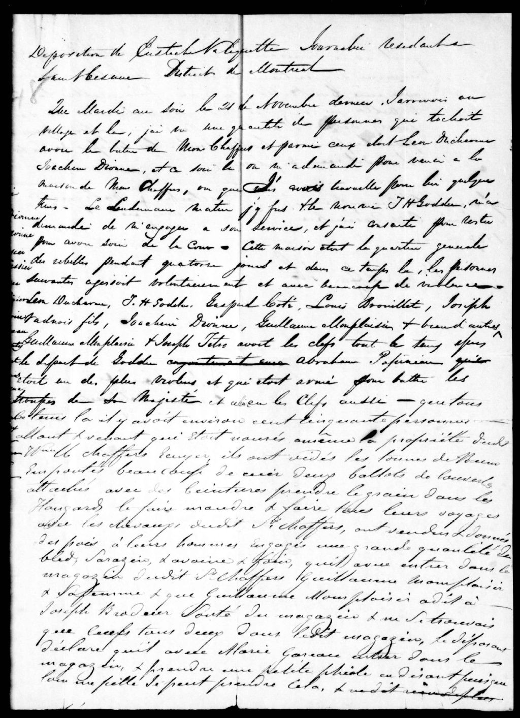 - Déposition d'Eustache Valiquette, de Saint-Césaire, contre Toussaint-Hubert Goddu, Léon Ducharme et Gaspard Côté