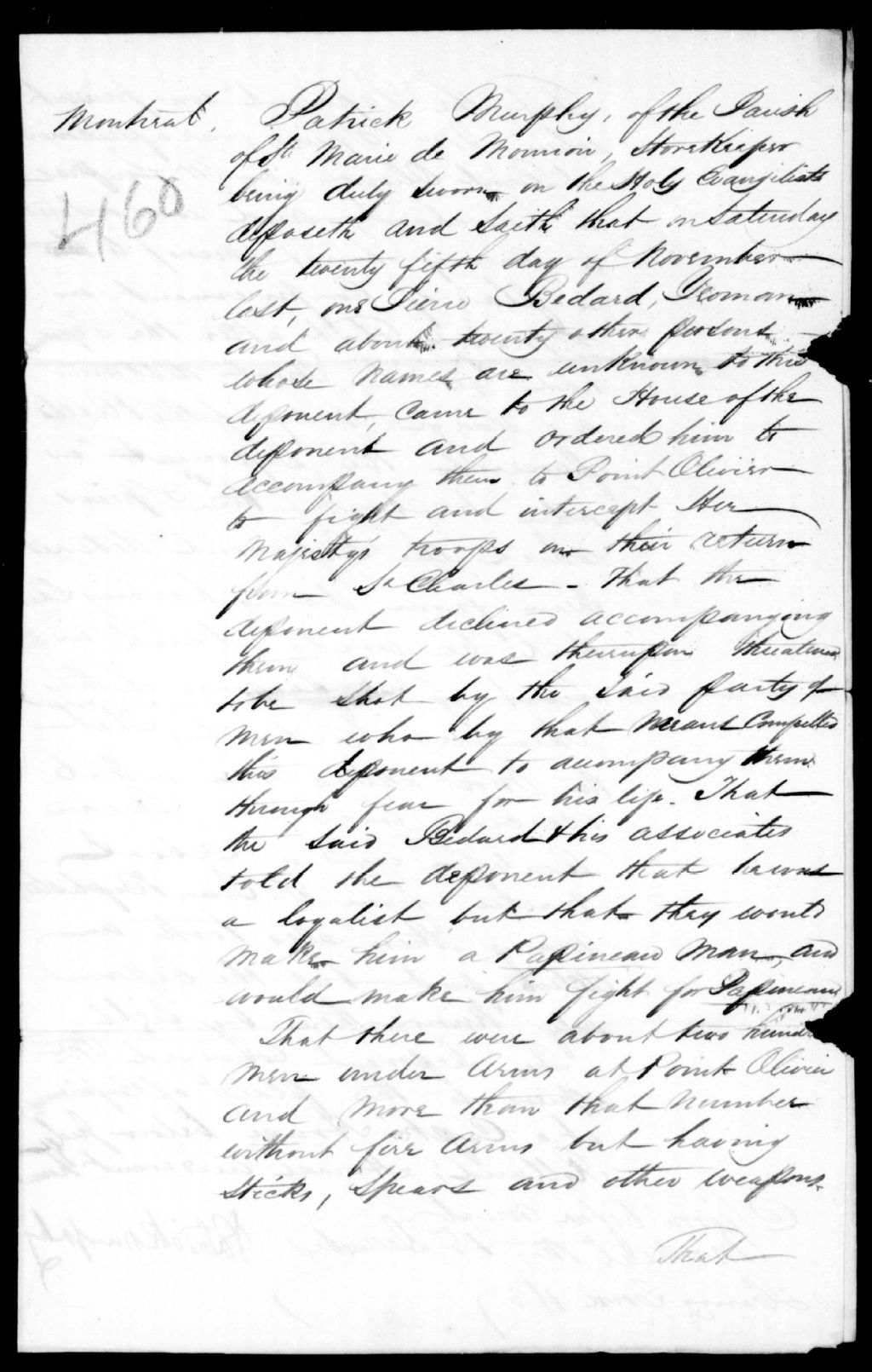 - Affidavit de Patrick Murphy, de Sainte-Marie-de-Monnoir, contre Pierre Bédard et autres