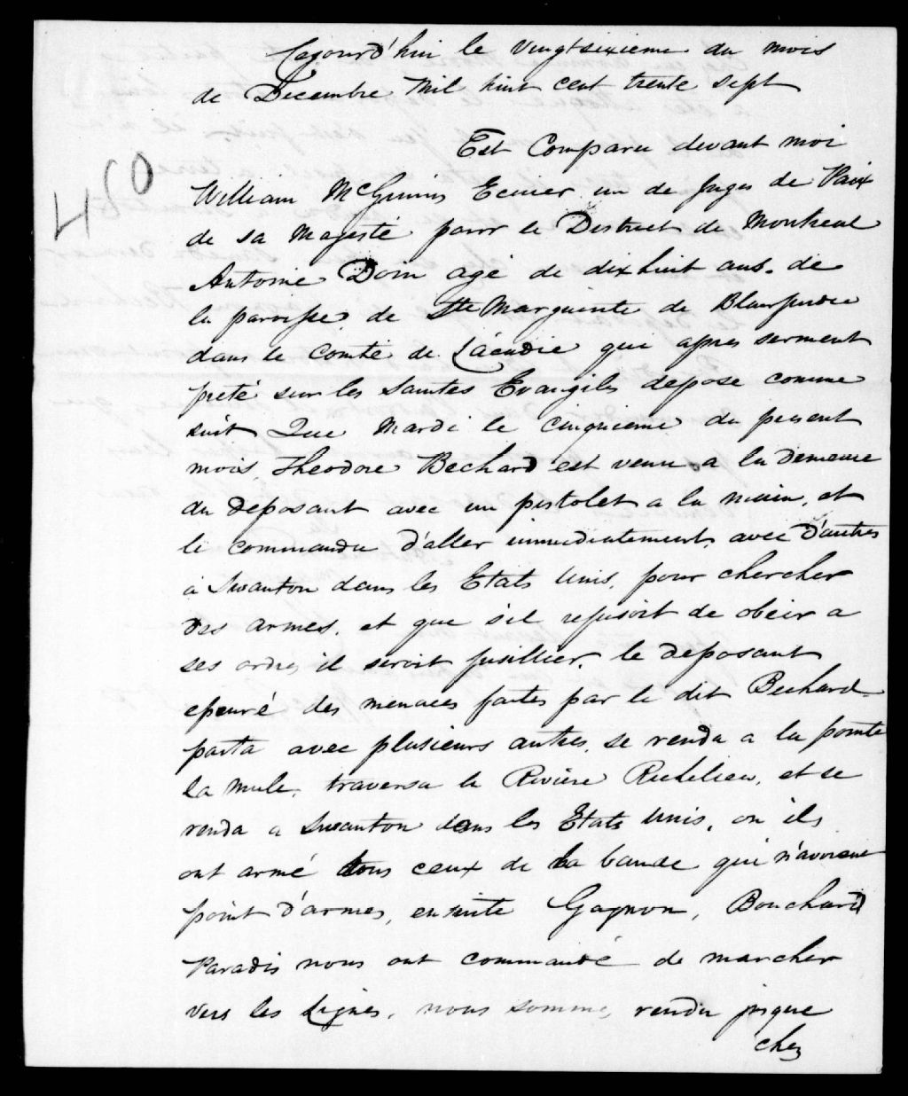 - Déposition d'Antoine Dom, de Sainte-Marguerite, contre Théodore Béchard
