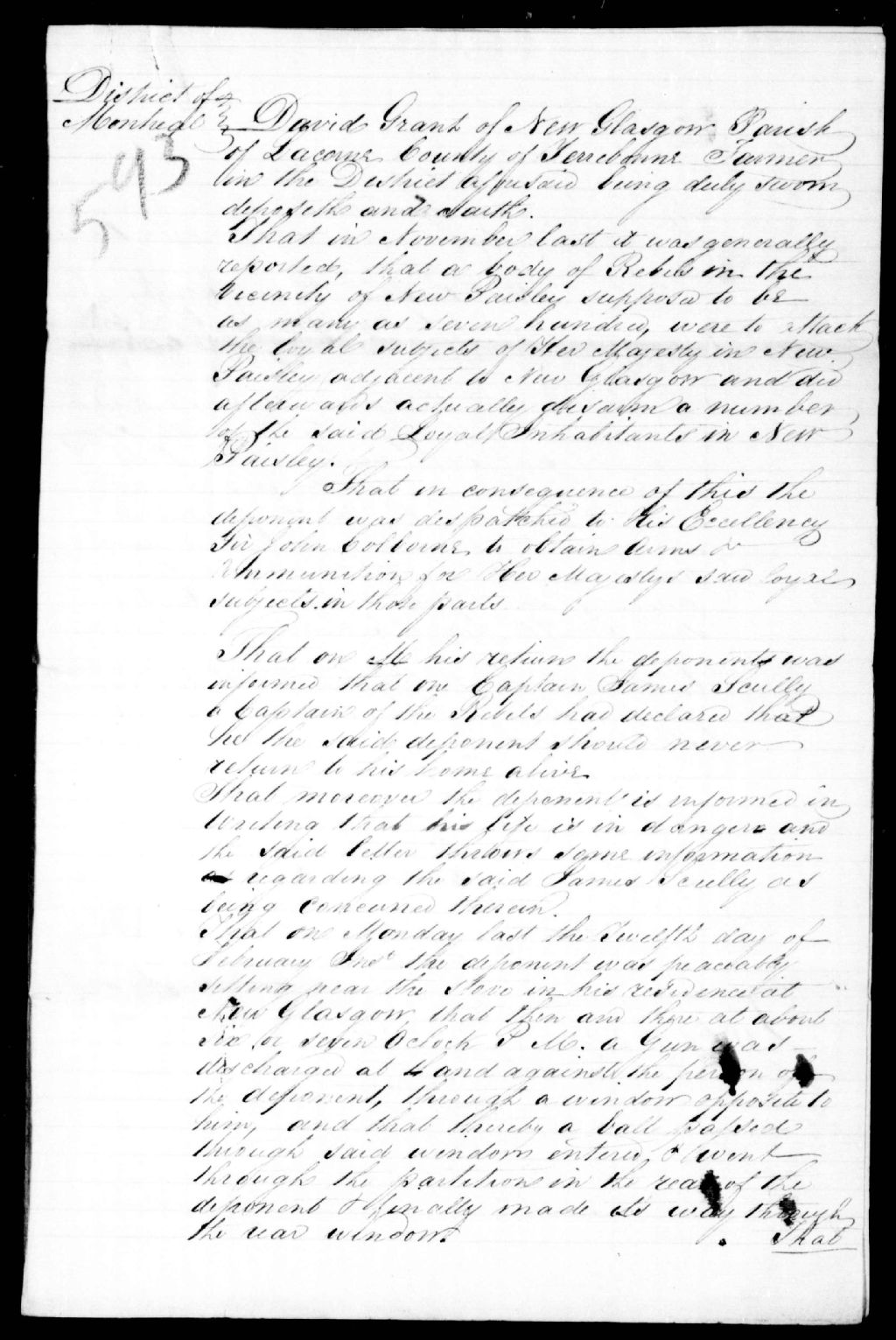 - Déposition de David Grant, de New Glasgow, contre James Scully et autres