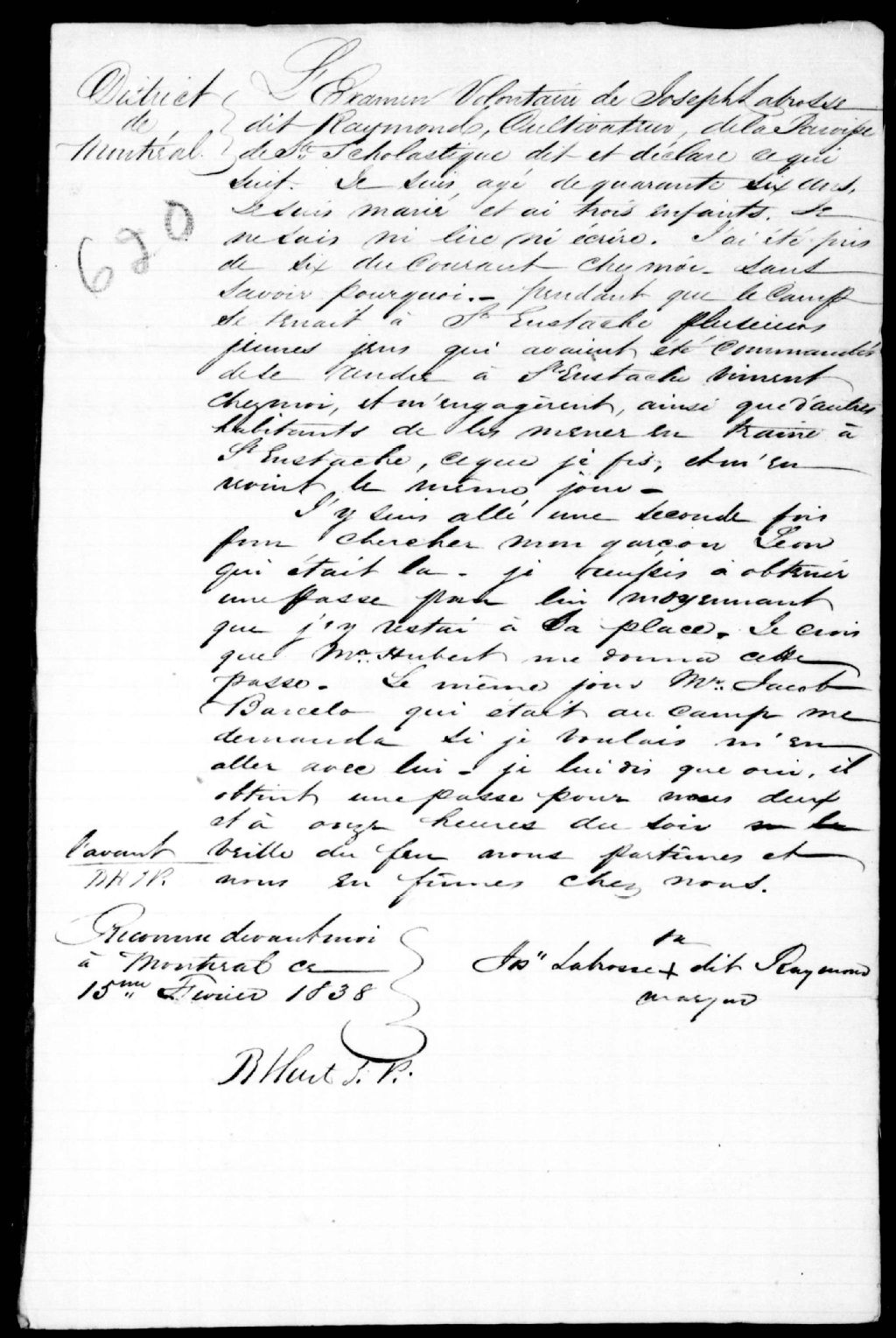Examen de Joseph Labrosse dit Raymond, de Sainte-Scholastique
