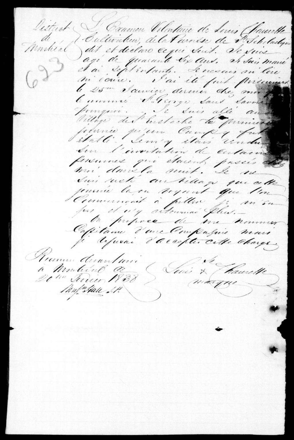 Examen de Louis Chaurette, de Sainte-Scholastique