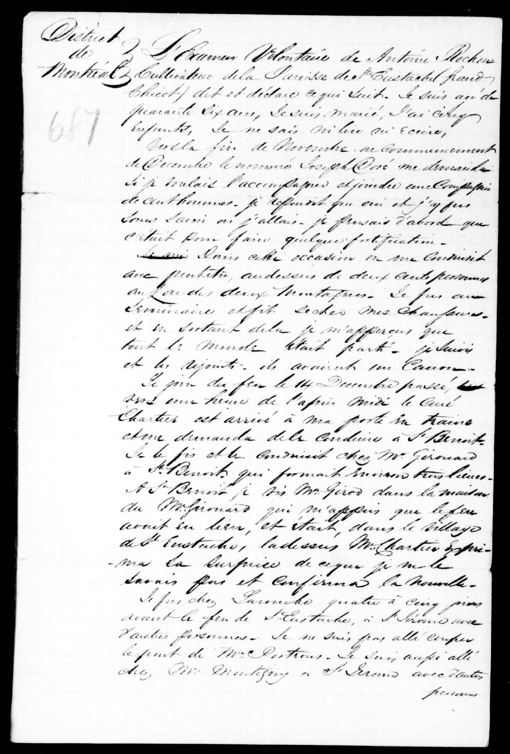 Examen d'Antoine Rochon, 31 janvier 1838, Archives nationales à Québec, Fonds Ministère de la Justice, (03Q,E17,S37,D687).