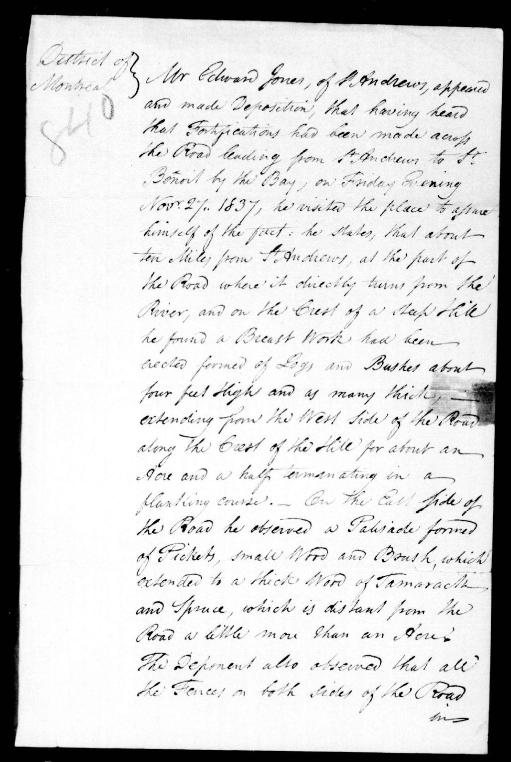 Déposition d'Edward Jones, de Saint-André-d'Argenteuil