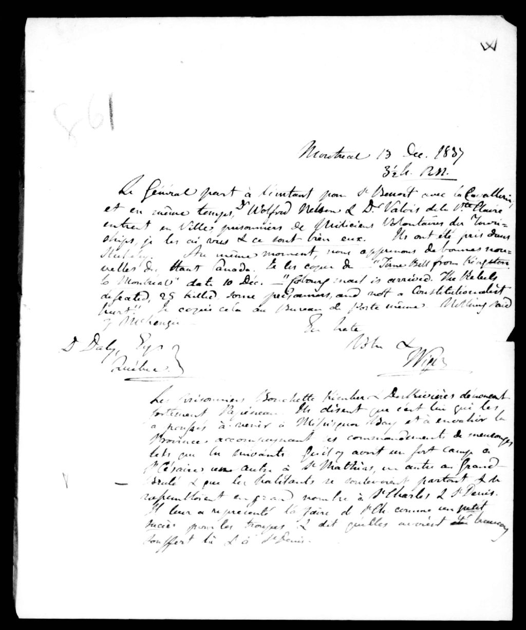 - Au moment où il écrit, le docteur Wolfred Nelson et le docteur Valois entrent en ville, prisonniers. Ce dossier fait partie d'un ensemble de documents intitulé : Robert Shore Milnes Bouchette, le docteur Wolfred Nelson et le docteur Kimber