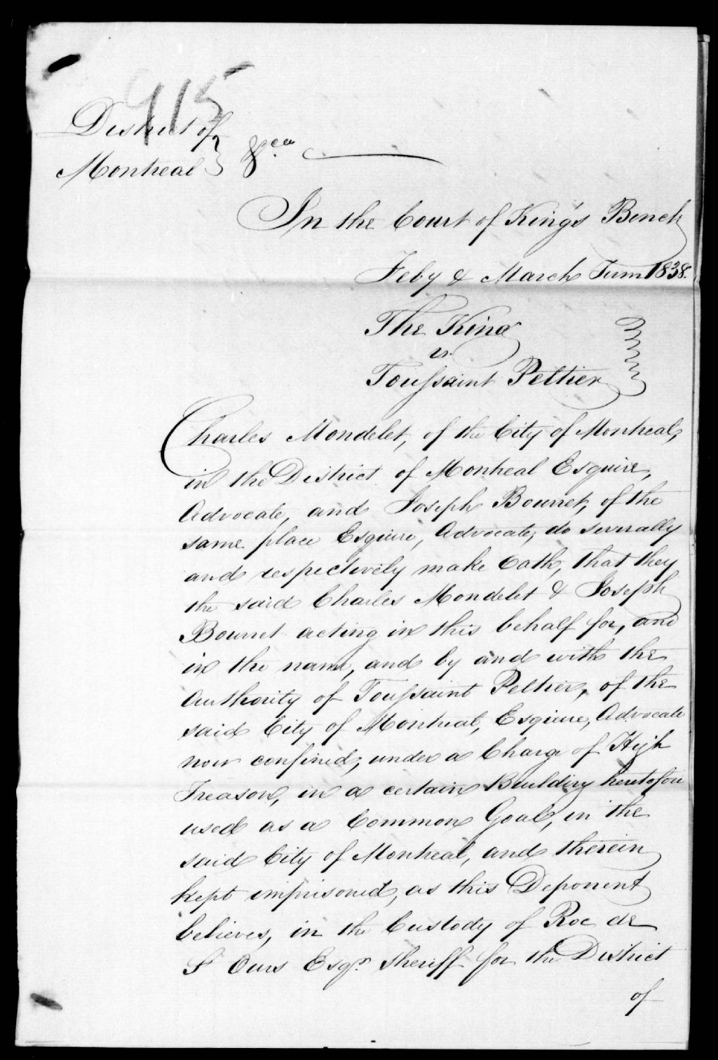 - Affidavit de Charles Mondelet et de Joseph Bourret