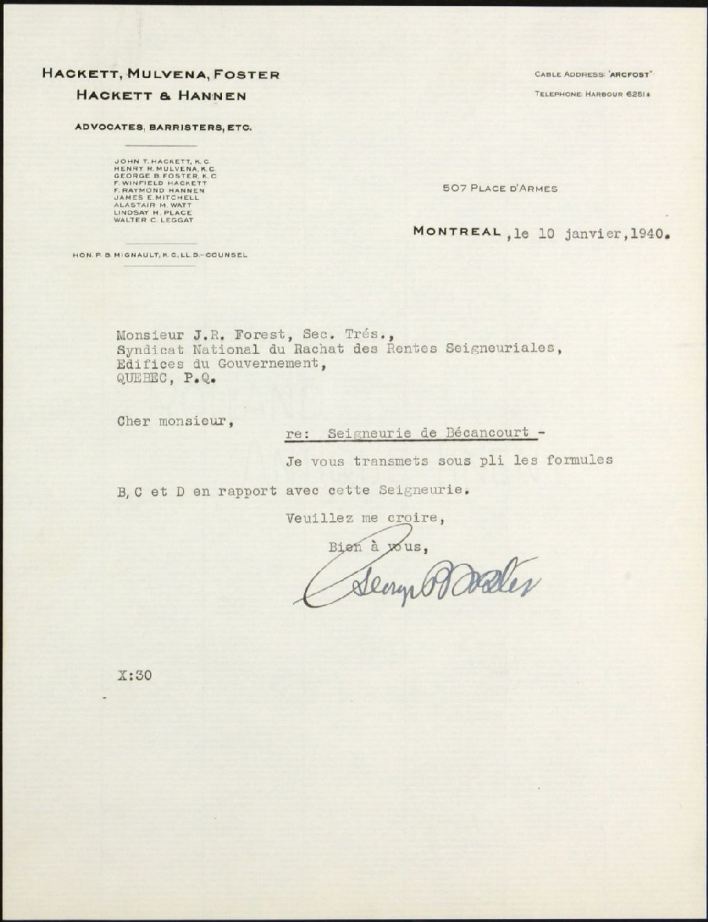 Georges B. Foster, seigneurie de Bécancour