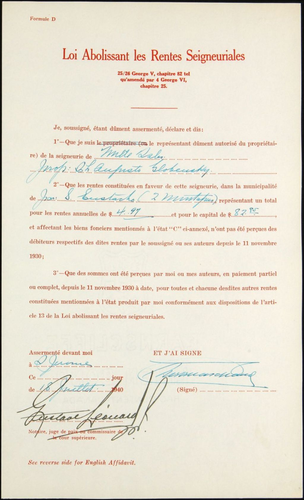 - Charles Auguste Globensky, seigneurie de Mille Isles