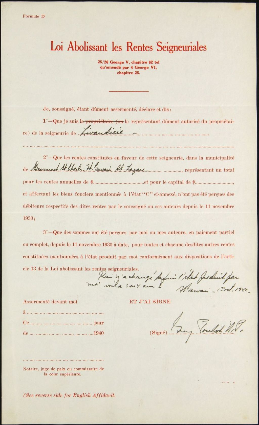 Philias Goulet, seigneurie de Livaudière