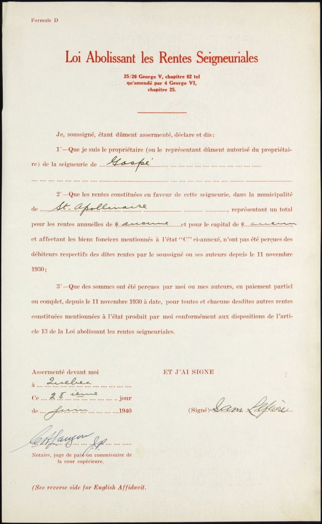 - Seigneurs Hart et autres, seigneurie de Gaspé
