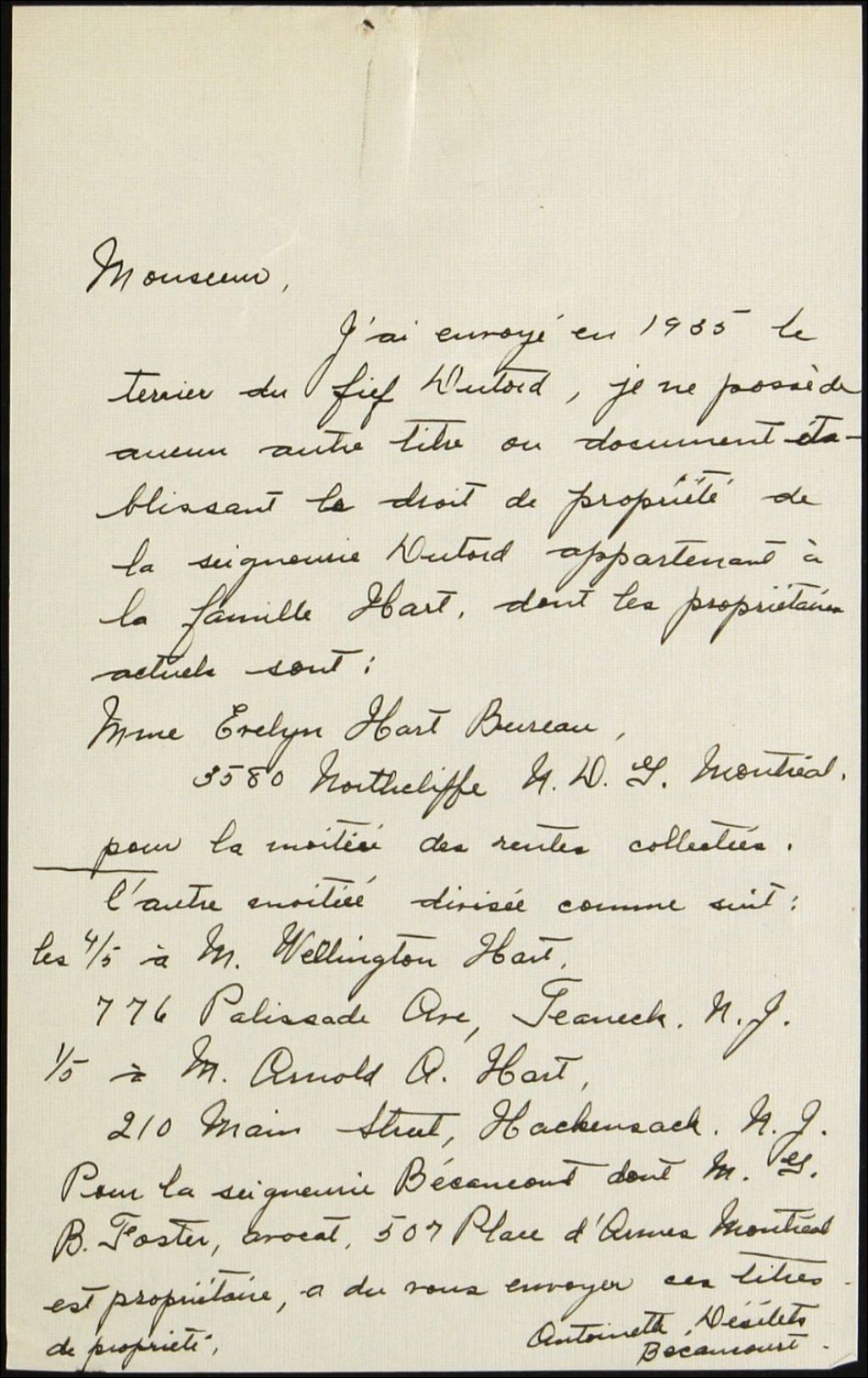 Madame E. Hart Bureau et autres, seigneurie de Dutord