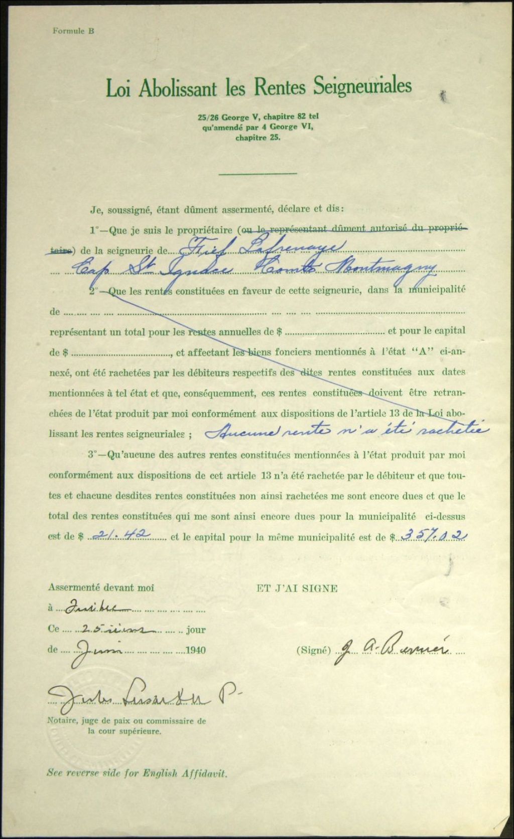 Joseph Amédée Bernier, seigneurie de Lafrenaye
