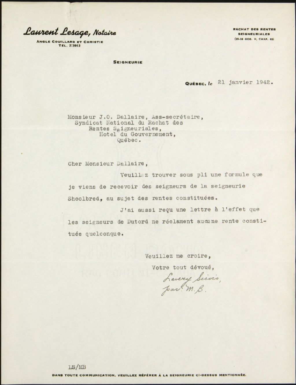 Edouard Lacroix, seigneurie de Shoolbred