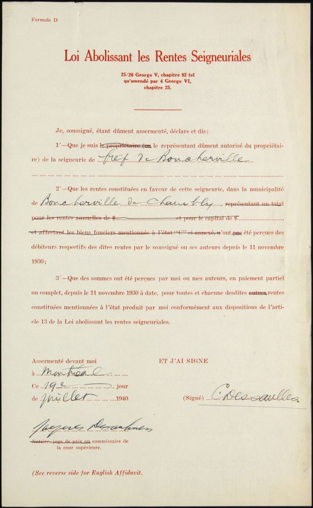 - Héritiers Dominique Mondelet, seigneurie de Boucherville