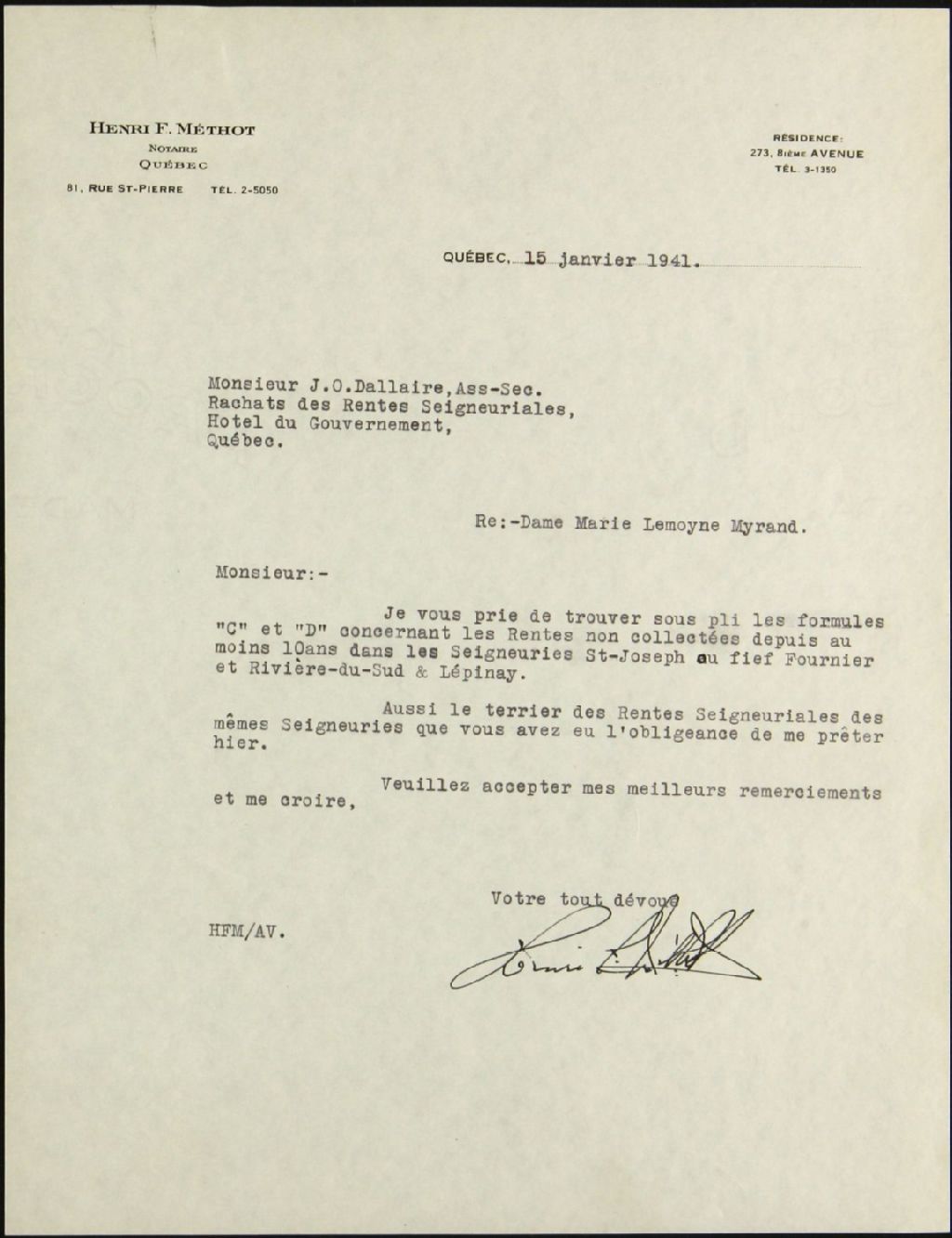 Marie Lemoyne Myrand, seigneuries de Rivière du Sud et L'Épinay et Fournier ou Saint-Joseph