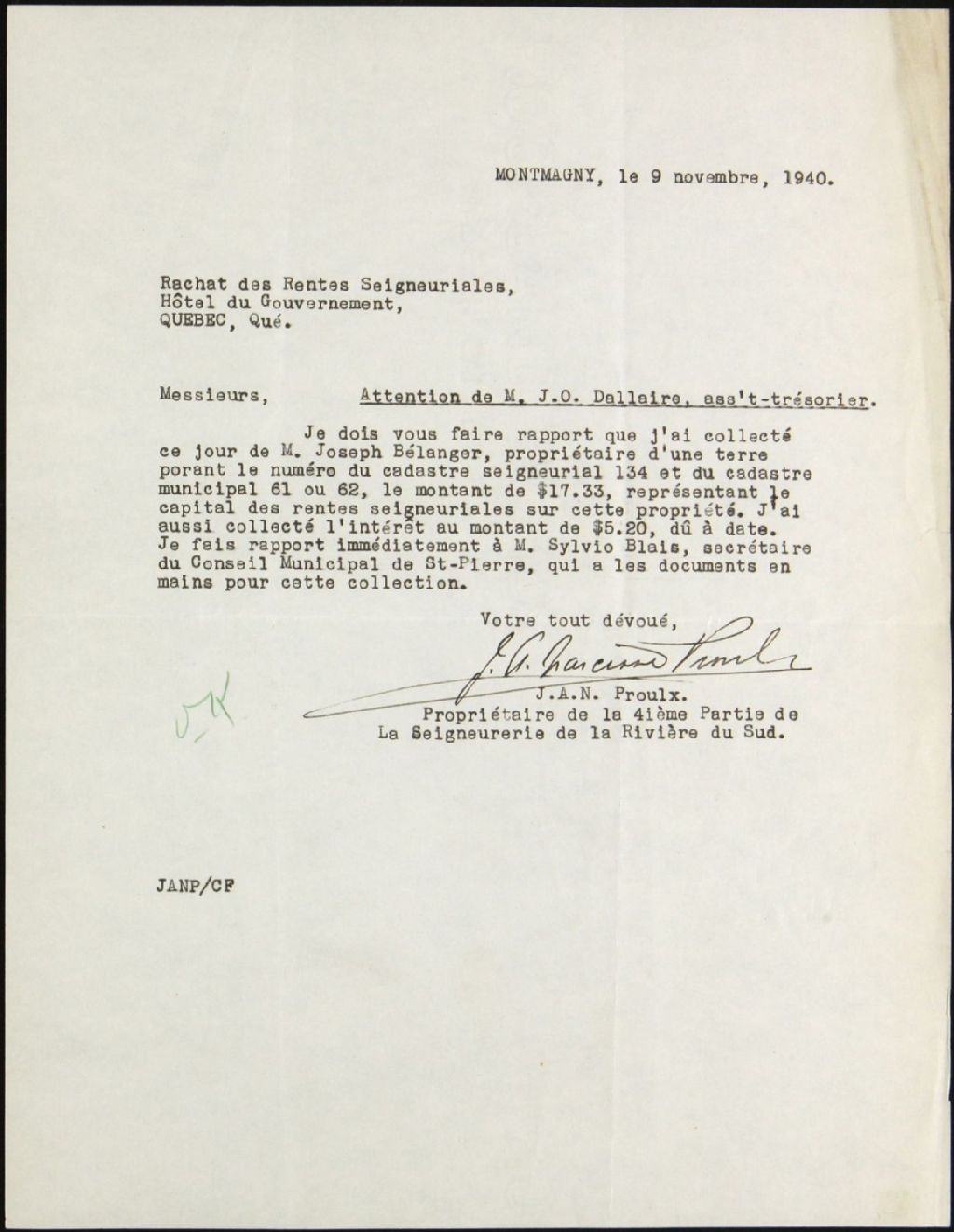 J. Narcisse Proulx, seigneurie de Rivière du Sud