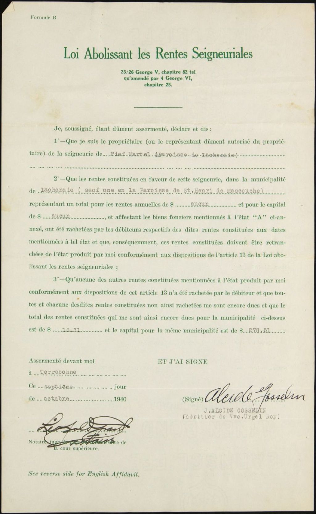 Dame Veuve Urgel Roy et autres, seigneurie de Lachenaie
