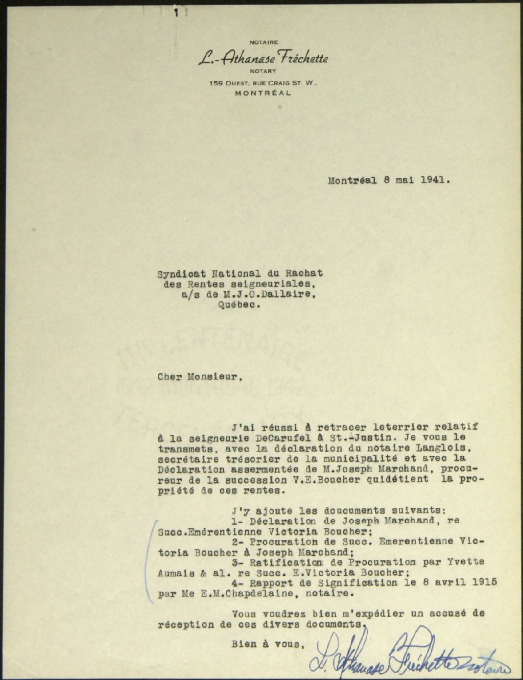 - Emerentienne Victoria Boucher, seigneurie de Carufel