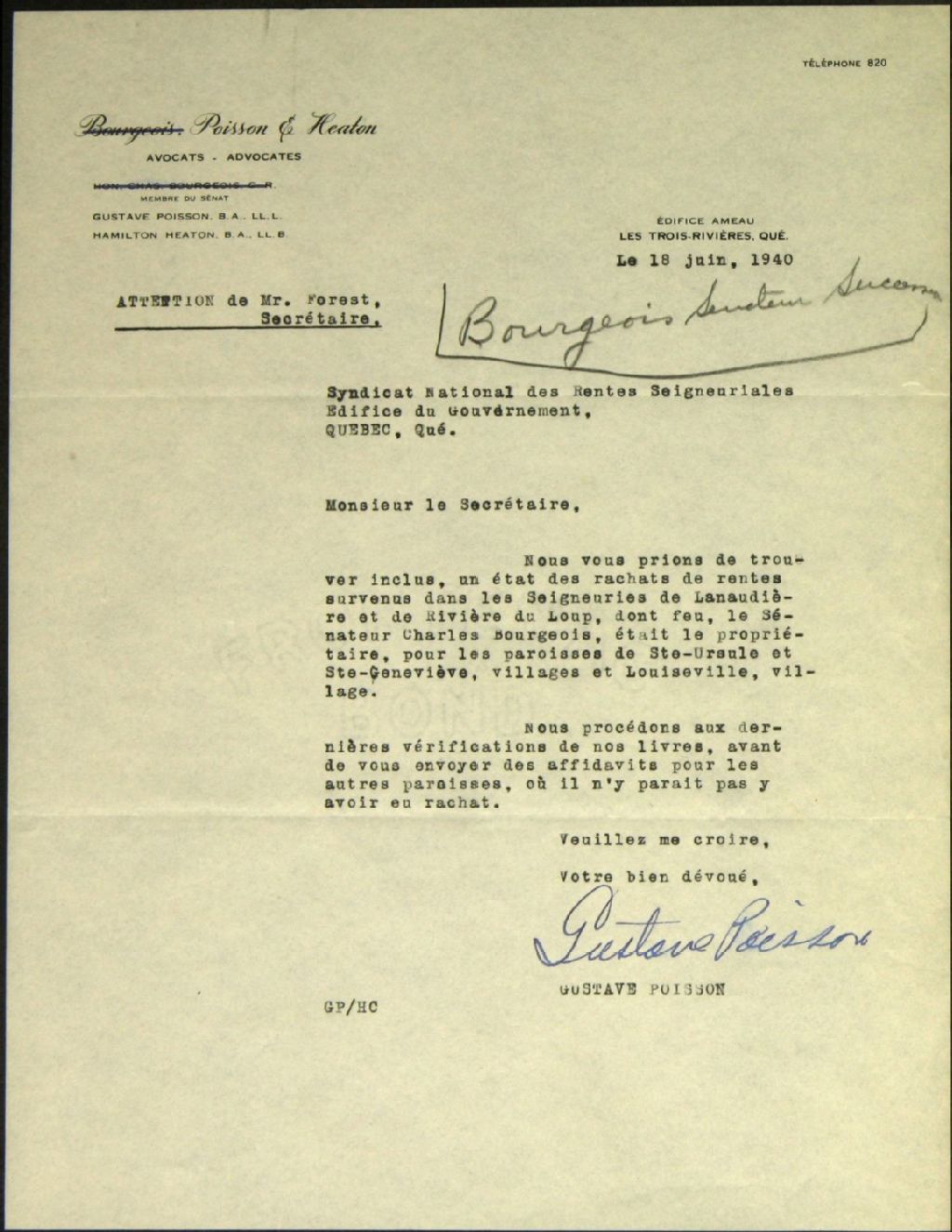 - Sénateur Charles Bourgeois, seigneuries de Niverville, Lanaudière et de la Rivière du Loup