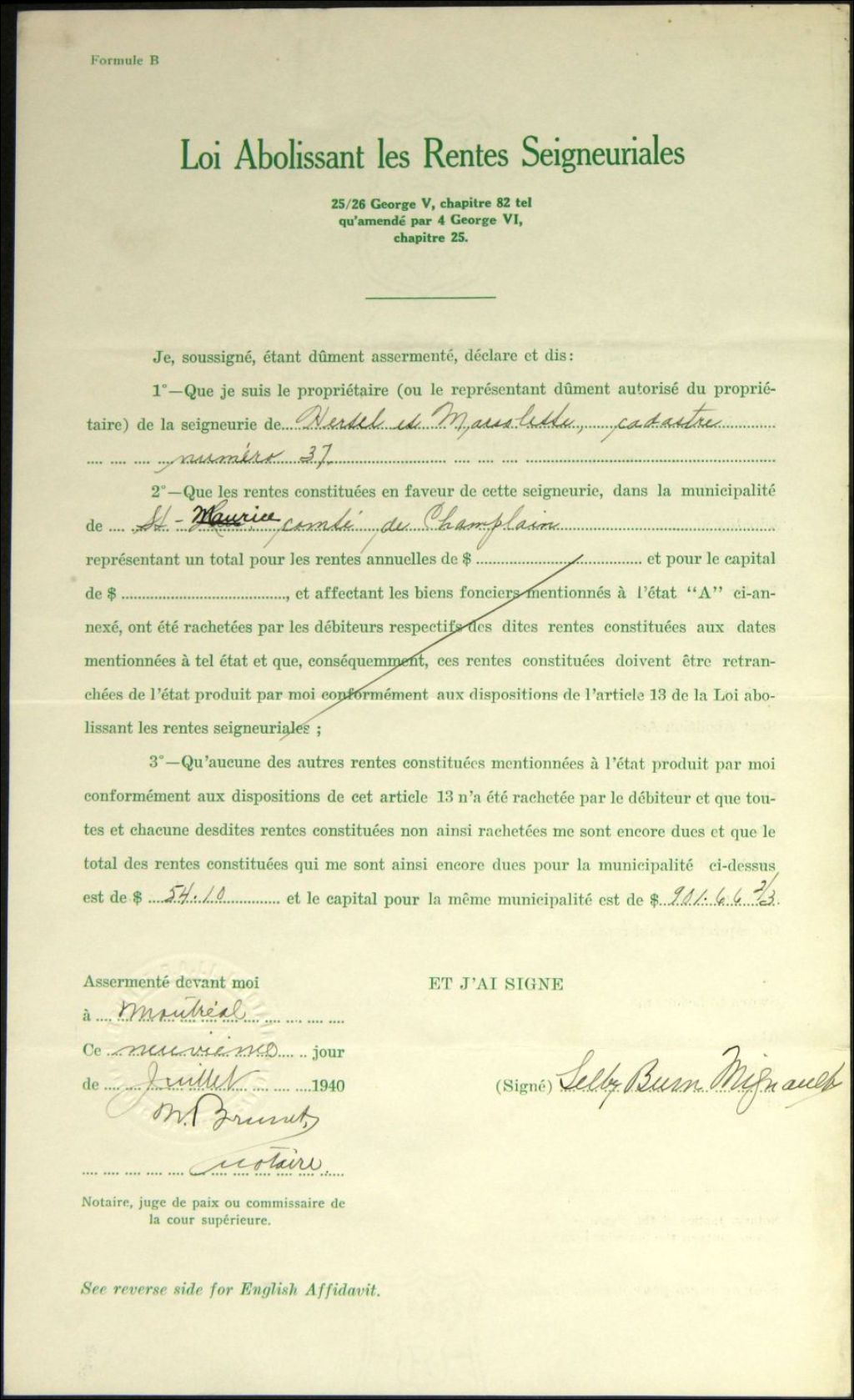 Succession William et Archibald Burn, seigneuries de Hertel et Marsolette