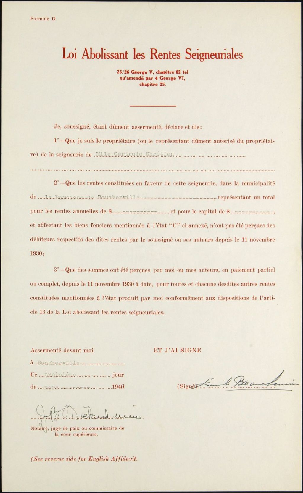 - Mademoiselle Gertrude Chrétien, seigneurie de Boucherville