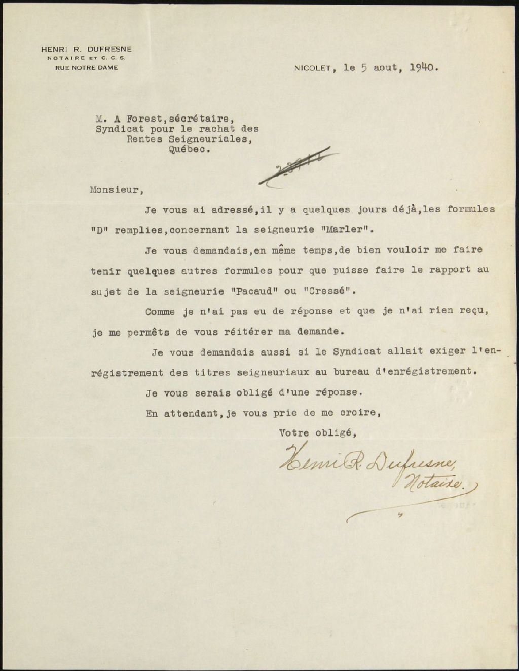 - Madame L. H. Coulombe et autres, seigneurie de Marler
