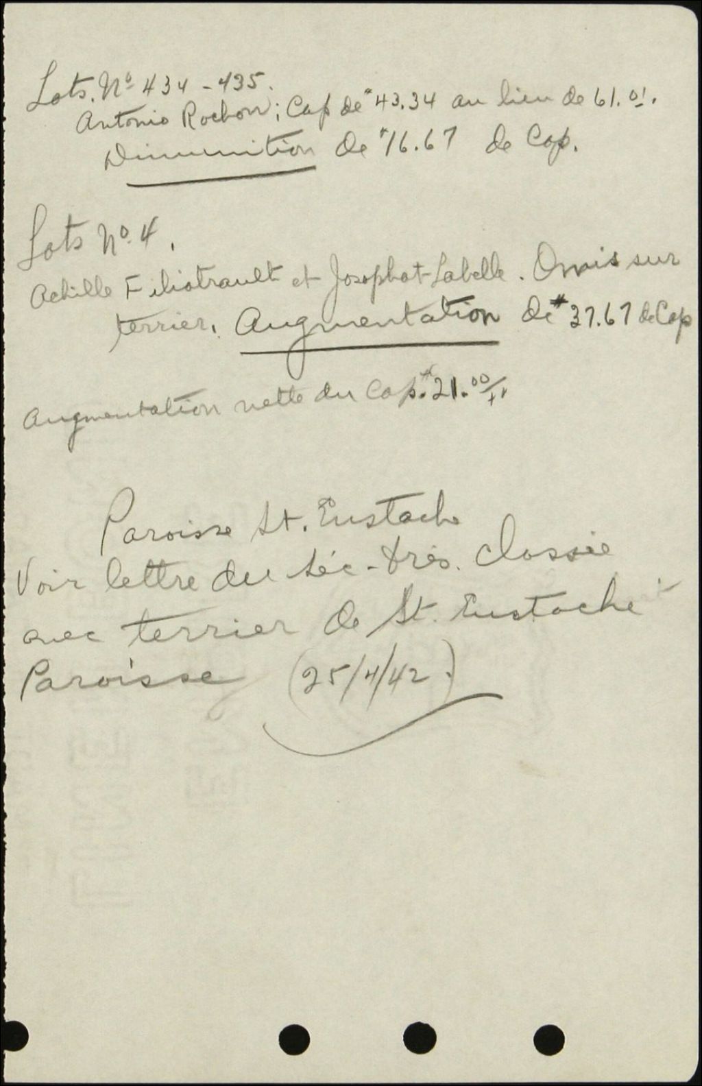Succession E. L. de Bellefeuille, seigneurie de Mille Isles, 1935-1940, Archives nationales à Québec, Fonds Syndicat national du rachat des rentes seigneuriales, (03Q,E39,S100,SS2,D78).