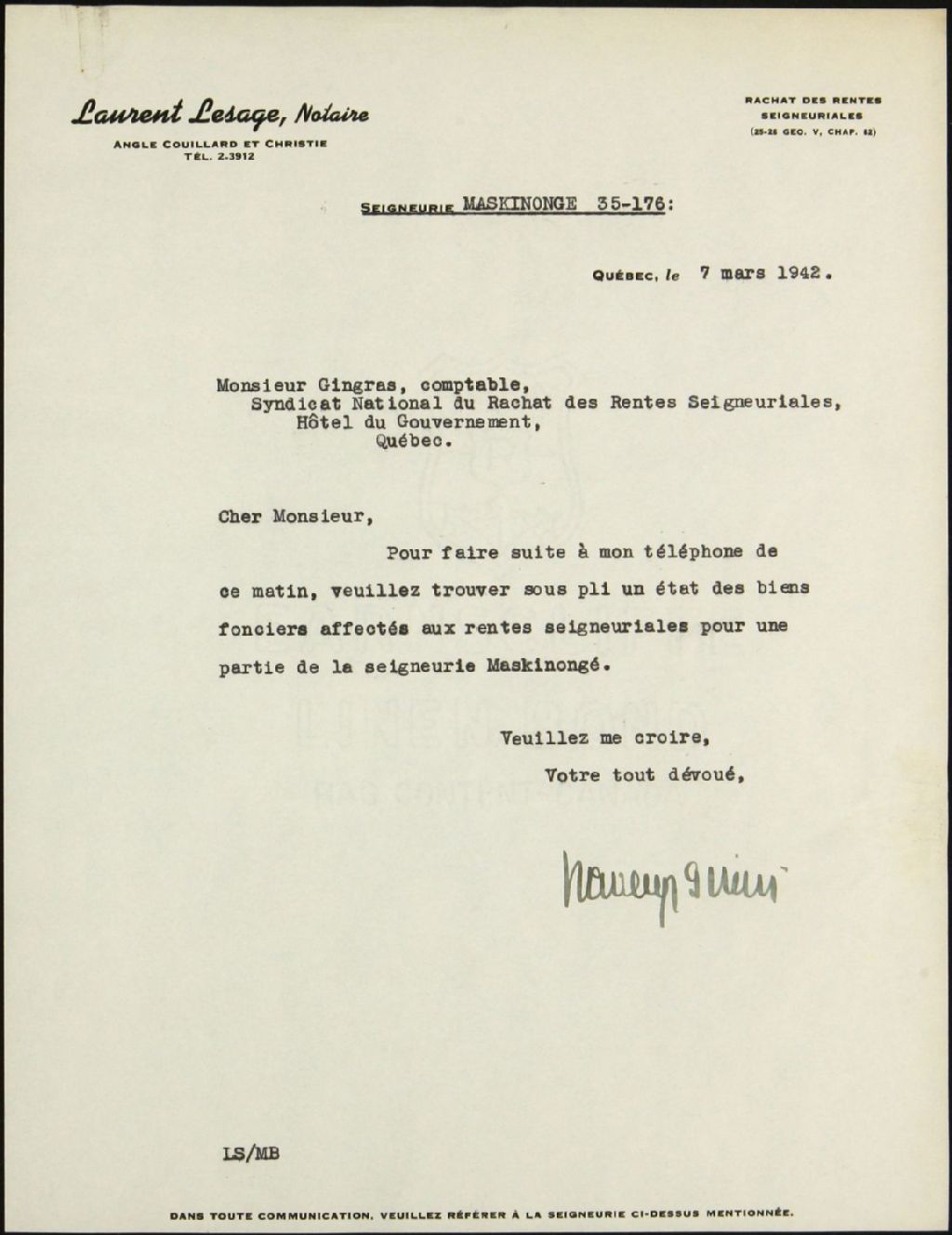 - Succession C. O. A. de Carufel, seigneurie de Maskinongé