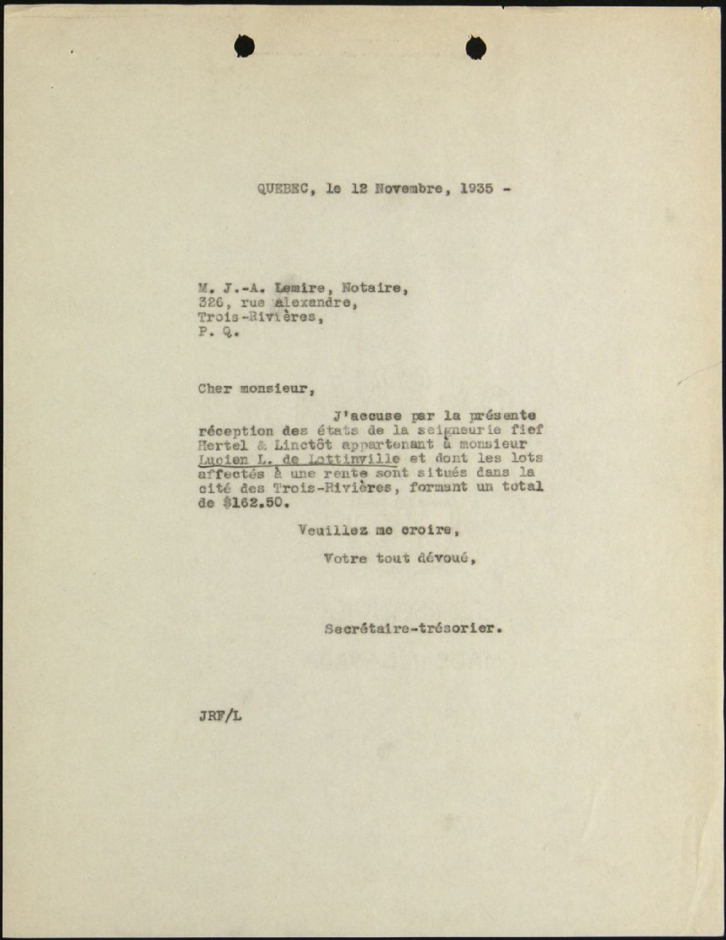 Lucien L. de Lottinville, seigneuries de Hertel et Linctôt